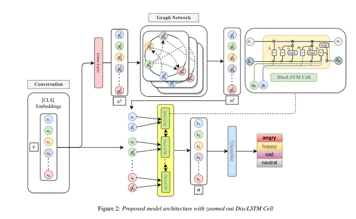 The expression of emotions is a crucial part of daily human communication. Modeling the conversational and sequential context has seen much success and plays a vital role in Emotion Recognition in Conversations (ERC). However, existing approaches either model only one of the two or employ naive late-fusion methodologies to obtain final utterance representations. This paper proposes a novel idea to incorporate both these contexts and better model the intrinsic structure within a conversation. More precisely, we propose a novel architecture boosted by a modified LSTM cell, which we call DiscLSTM, that better captures the interaction between conversational and sequential context. DiscLSTM brings together the best of both worlds and provides a more intuitive and efficient way to model the information flow between individual utterances by better capturing long-distance conversational background through discourse relations and sequential context through recurrence. We conduct experiments on four benchmark datasets for ERC and show that our model achieves performance competitive to state-of-the-art and at times performs better than other graph-based approaches in literature, with a conversational graph that is both sparse and avoids complicated edge relations like much of previous work. We make all our codes publicly available on GitHub.